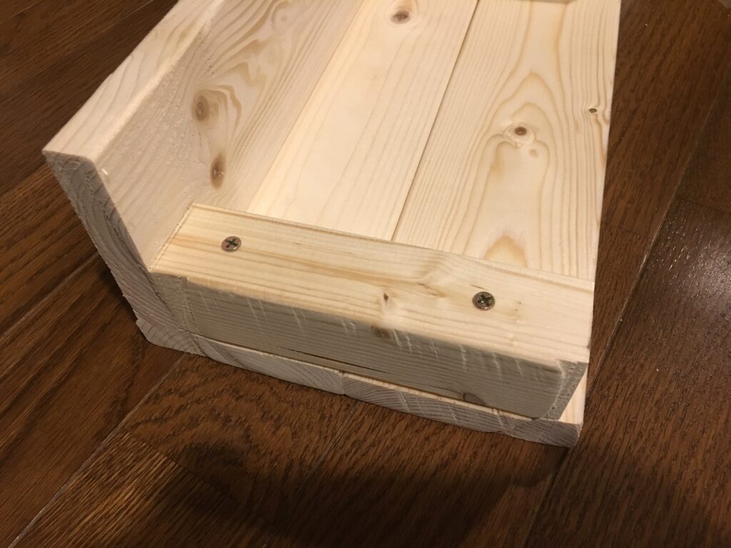以前作った防水パンカバーと同じなのですが、見せる部分と見せない部分に注意して組み立てましょう。大きなL字のカバーを作るつもりで組み立て、ビスで固定すれば問題ありません。